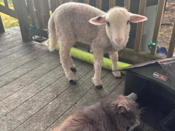 Ewe with Wether DOB March 2025 with Fluffy Cat